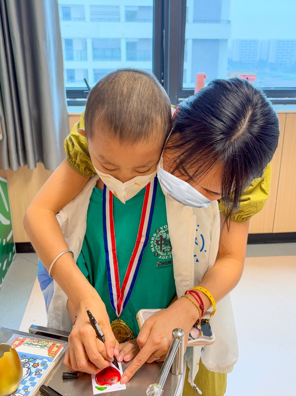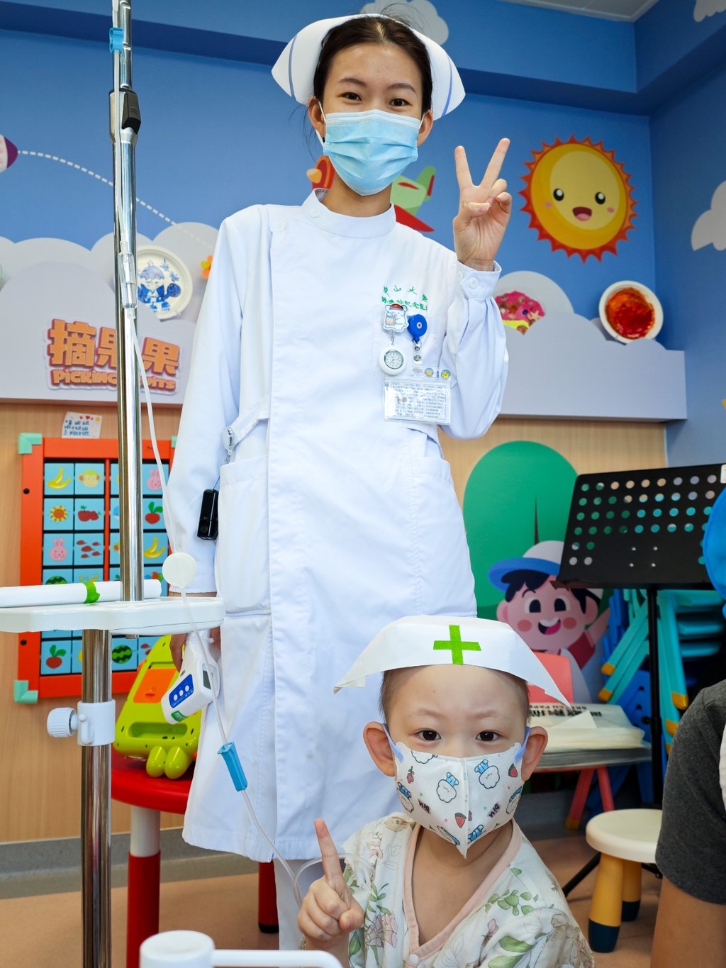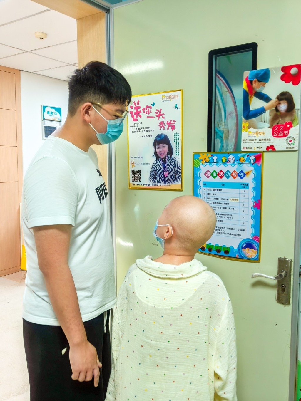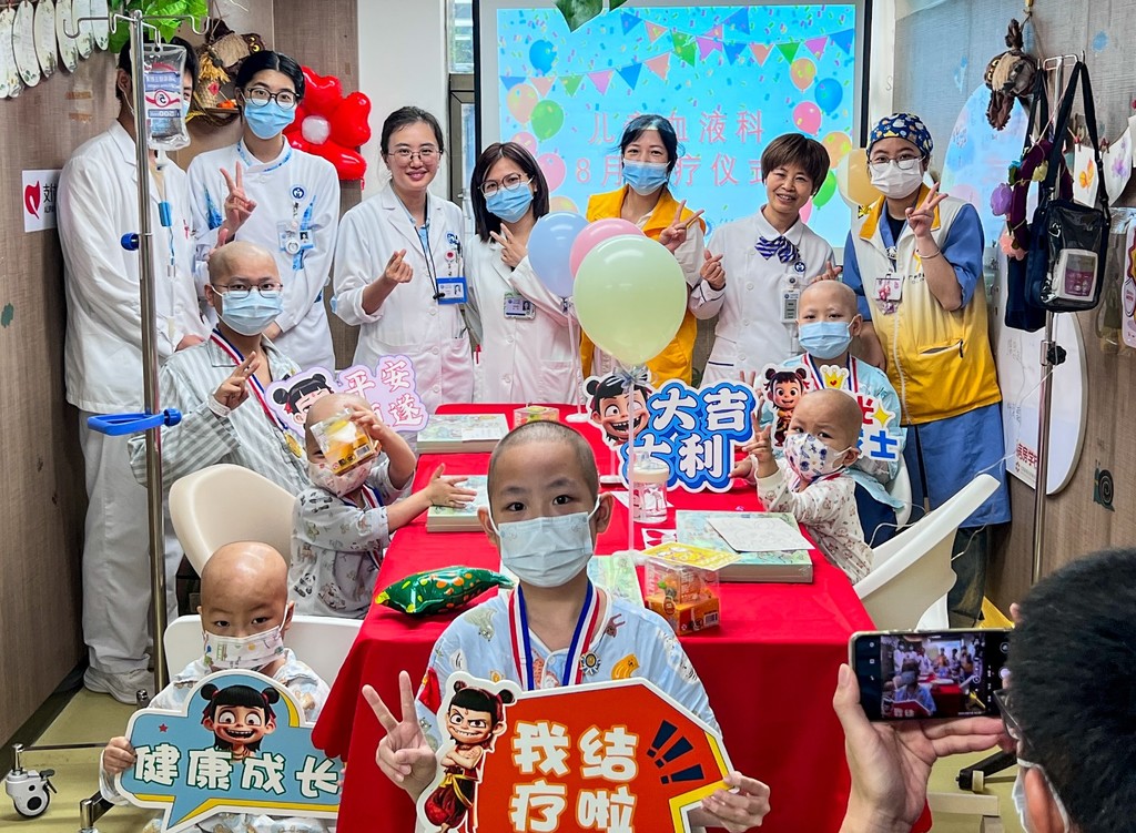 有一位大朋友回来做最后一次复查,一家人和主治医师及护长拍照留念。孩子妈妈表示终于熬过了这五年,孩子今年考上了广州的大学,准备开启的新旅程啦。在给他们拍照的时候,游戏区里坐着第一、二疗的孩子妈妈们羡慕地看着他们一家脸上的笑容。 柚子姐姐说:“看看这一整墙的结疗名字,你们的孩子以后会迎来这一天的!” 妈妈们说:“看着墙上的名字没啥感觉,但今天看到真的康复者了,瞬间信心满满啦!” 拍照结束后,康复者的妈妈来游戏区给其他的妈妈们加油打气。 康复者的妈妈说:“熬过来就好了,我家孩子当时14岁,刚开始住院都很抗拒治疗,害怕打针……现在都好起来了,你们也可以的!” 随后,一家人收拾东西开开心心离开医院,大朋友欢呼:“终于再也不用来医院啦!” |