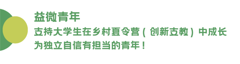 你的捐赠,将会让更多的大学生和乡村孩子在夏令营中共同成长。
