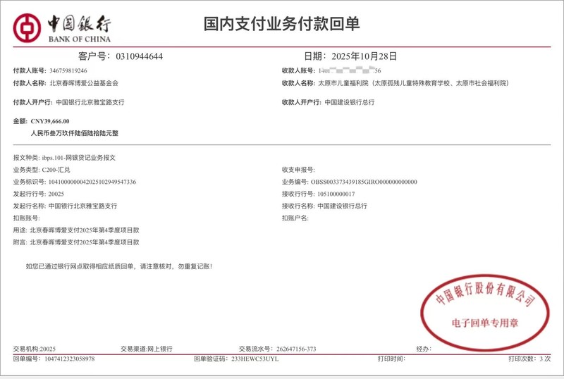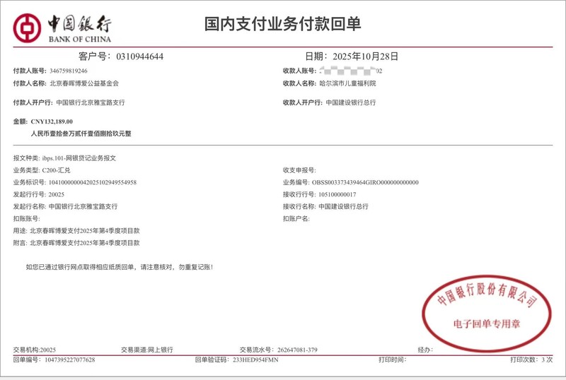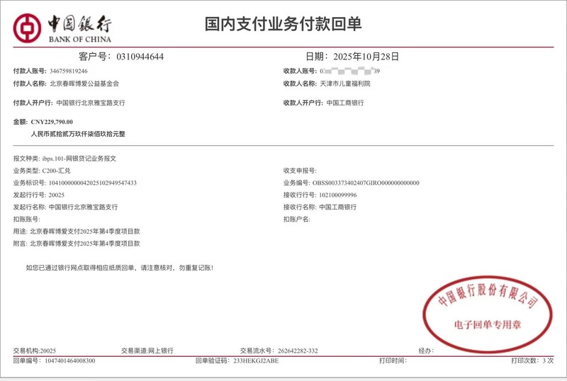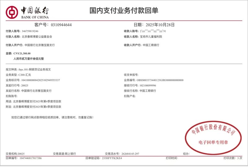 (以上票据款项部分由本项目支持,剩余部分由其他捐款渠道支持)