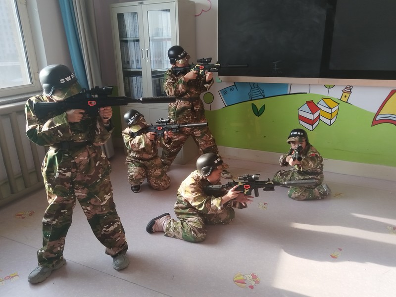 活动当天,孩子们身着迷彩服,手持软弹游戏枪,化身为勇敢的“小战士”。在春晖老师们精心布置的障碍区和堡垒间,挑战着各项任务。无论是“夺旗”任务,还是考“护送物资”,孩子们分组制定战略战术,互相配合。春晖老师发现,平时调皮的小墨学会了倾听,内向的小清勇敢地表达自己的想法。