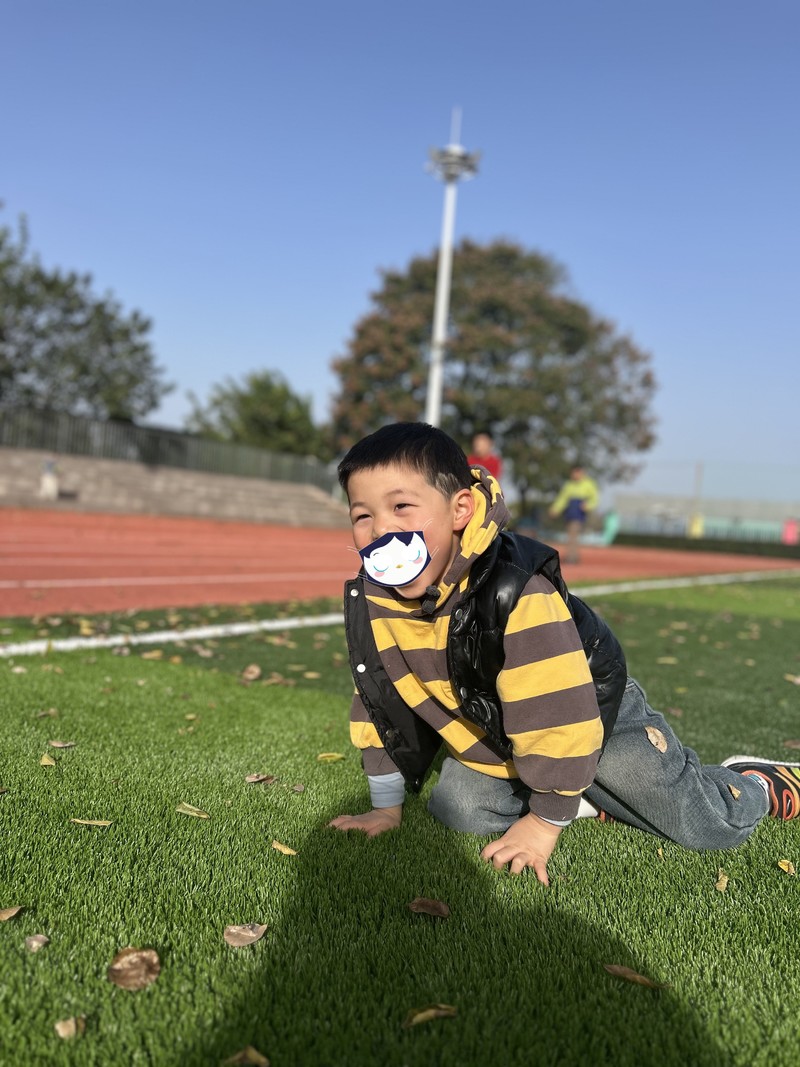 一开始,孩子们在操场玩耍时,小华总是独自躲在角落,默默看着其他小伙伴嬉戏,眼里既有胆怯,又有向往。春晖老师察觉到他的拘谨,轻声鼓励他,小华犹豫了一会儿,慢慢走向人群,试着和大家一起奔跑、追逐彩色气球。渐渐的,他眼里的胆怯少了,多了几分好奇与开心,慢慢融入了集体的欢乐中。
