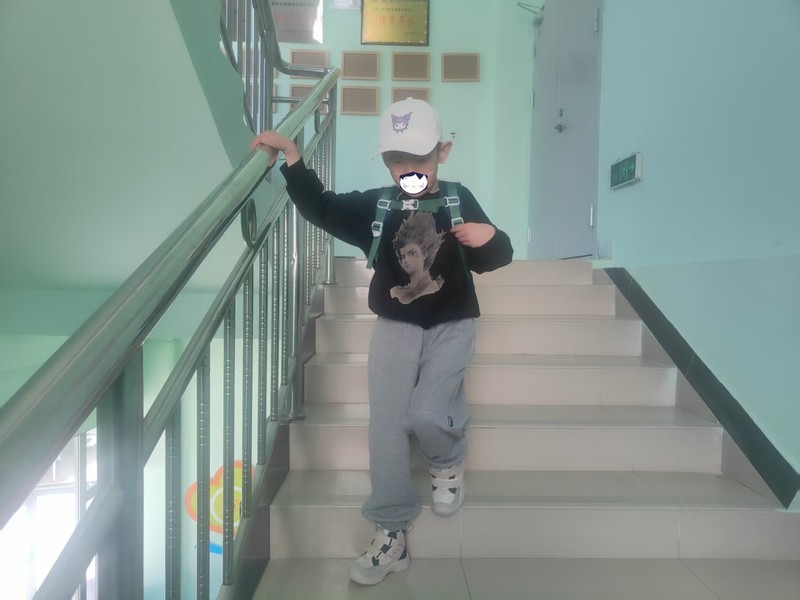 去年,刚进入项目的拉巴每一次站立都离不开旁人的搀扶,身体的平衡对他而言如同遥不可及的难题。如今,在训练区,他可以稳稳地从训练垫的这一端挪到另一端,当抵达目的地时,他骄傲地看向妈妈,期待得到妈妈的夸奖。在日复一日的训练中,拉巴还学会了自己扶着扶手上下楼梯,现在的他不需要别人的帮忙自如地行走了。