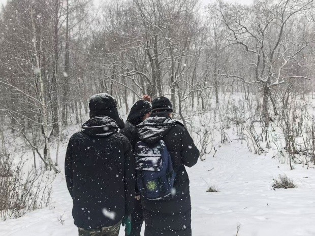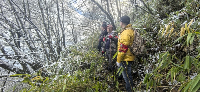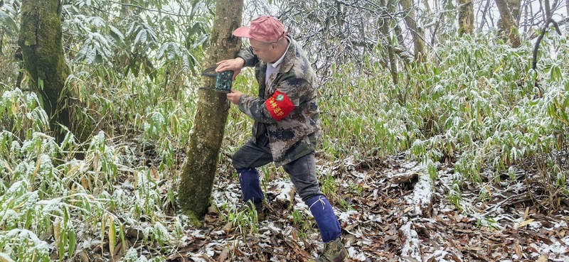 12月初,都江堰山林迎来了入冬后初雪。气温下降、道路湿滑,但并未影响巡护工作的正常开展。 巡护队员们依照既定路线,迎着初雪深入都江堰的大熊猫栖息地。巡护途中,队员们查看并记录下栖息地的生态状况;同时,对布设在林间的红外相机进行检查与维护。 |