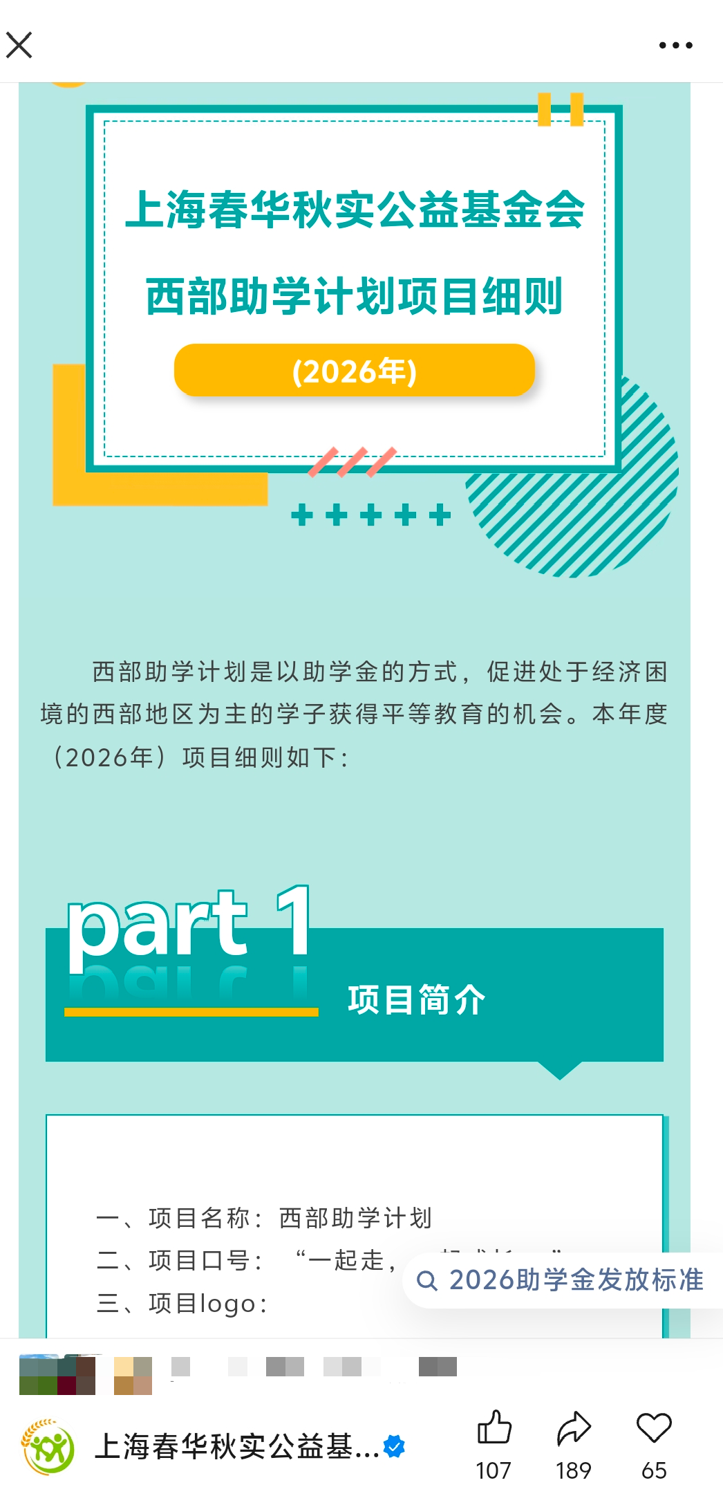 上海春华秋实公益基金会成立于2011年2月,是经上海市民政局正式批准注册的慈善组织。旨在帮助贫困学子、本地孤寡老人以及其他弱势群体,为社会各界爱心人士搭建传递爱心的公益平台。