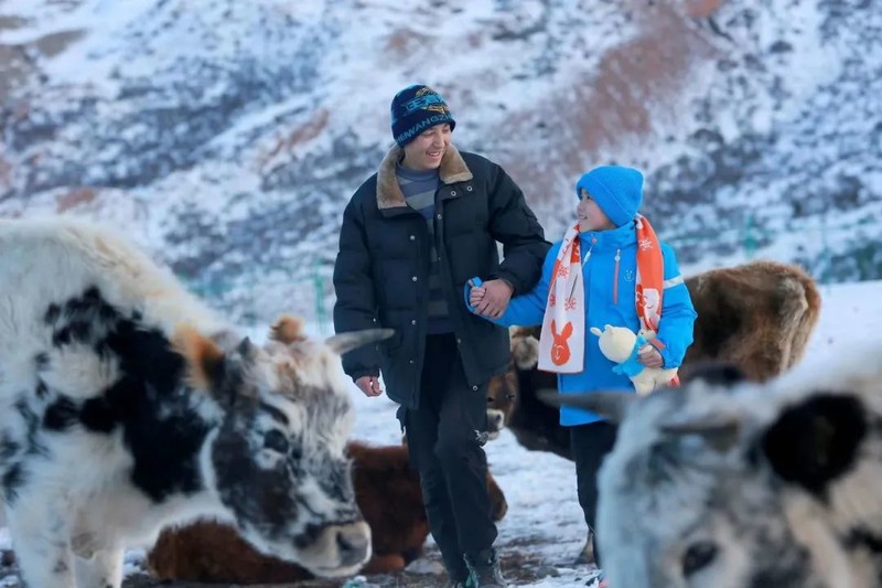 2023年初,第七师胡杨河市青年志愿者协会的志愿者们,来到巴音沟牧场,给里边的几个孩子送温暖包。家里常年穷苦的生活,让孩子养成了怯懦、隐忍的性格,在门外刚见到志愿者的时候,小姑娘很是害羞,眼神里闪过一丝胆怯,可当志愿者把温暖包递给小艾的时候,小艾脸上还是露出了藏不住的开心。穿上温暖包里的衣服后,小艾更高兴了,也慢慢跟我们熟悉了起来;妈妈说,这是小艾第一次穿新衣服,之前一直都是穿哥哥穿过的,戴上新围巾、穿上新鞋子,小艾牵起了家里的小牛犊,和哥哥一起到雪地里玩。这只小牛犊,对小艾全家而言,是很珍贵的东西。可小艾却大方地递给志愿者说,给你们牵一下吧,或许,这也是小艾在用自己的方式在感谢志愿者们。