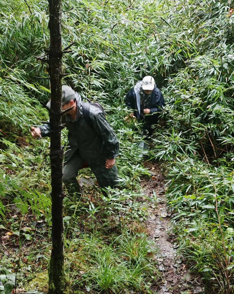2025年9月,一个地球自然基金会的项目人员前往四川省大熊猫栖息地,在当地合作伙伴的陪同下,在项目区域开展了一次野外踏查工作。 因为此次参与踏查工作的项目小伙伴并不是专业的人员,因此巡护队员们挑选了一条相对轻松的路线。即使如此,参与者们也必须在丛林间艰难地穿梭,时不时被树枝挂住衣服,被倒木挡住去路,被藤蔓缠住脚踝。 当天虽没下雨,但9月的四川依然潮湿,项目人员一步一打滑地“摔”到了我们此次踏查活动的目的地——一处大熊猫休息过的采食场,看到了几个虽然陈旧,但是依然清晰可辨的野生大熊猫粪便。项目人员在兴奋之余,也认真学习了大熊猫粪便相关的有趣知识。 最后,项目人员在巡护队员的指导下,安装了一台红外相机,它将代替我们坚守在这片生机勃勃的栖息地里,继续“观察”野生动植物的情况,为未来更好的开展大熊猫及栖息地保护工作贡献力量。