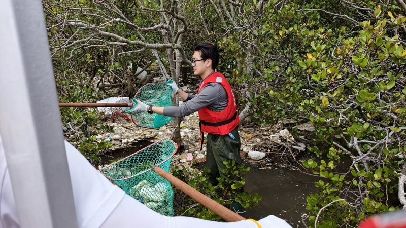 3月,项目团队在多处地点开展了净滩和培训活动。 一共举办了7场净滩活动,将近400位志愿者参与和1场以旧换新,27位渔民参与兑换。 志愿者进入复杂的红树林区域,清理难处理的垃圾