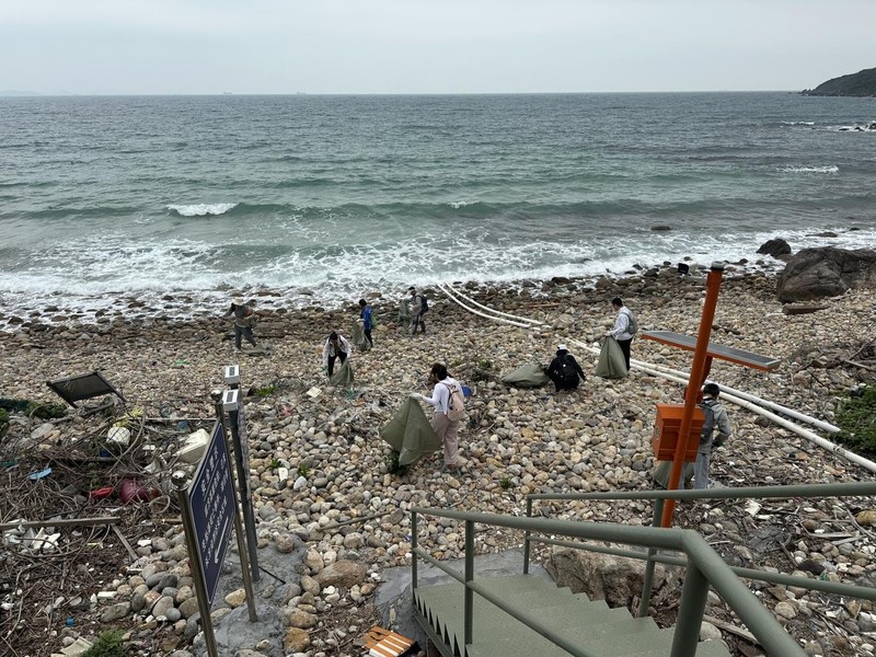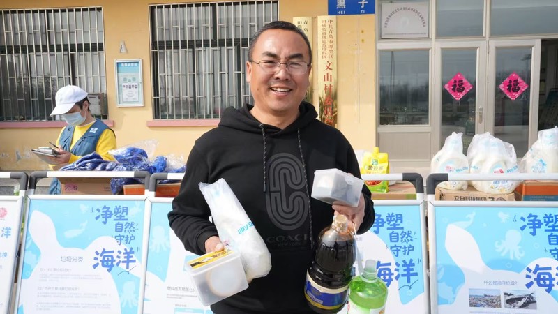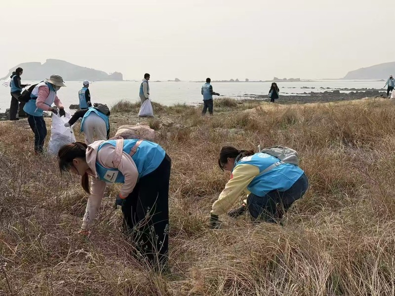 志愿者正在进行海滩垃圾清理 青岛田横岛的以旧换新现场
