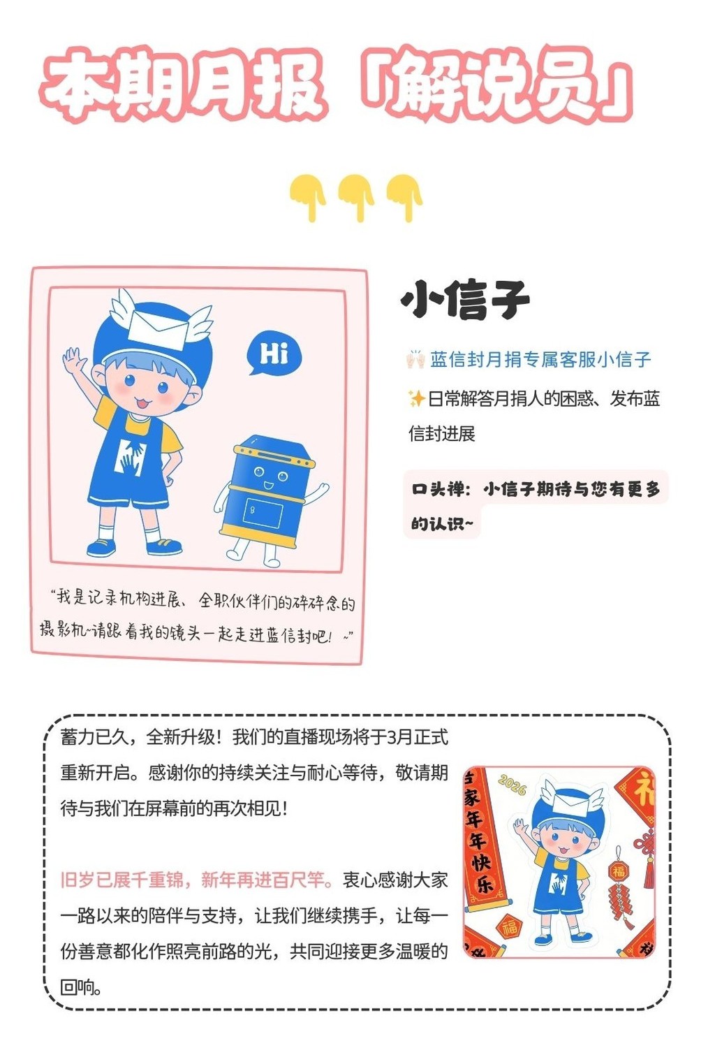 有任何不足或建议可通过回复邮件或联系蓝信封月捐人专属客服小信子,与我们交流反馈。