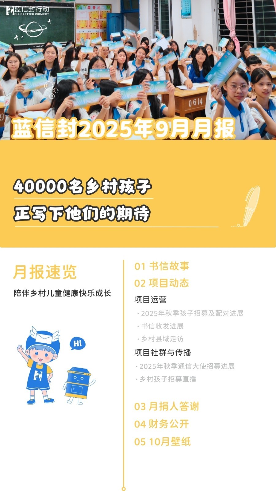 蓝信封2025年9月月报︱40000名乡村孩子正写下他们的期待