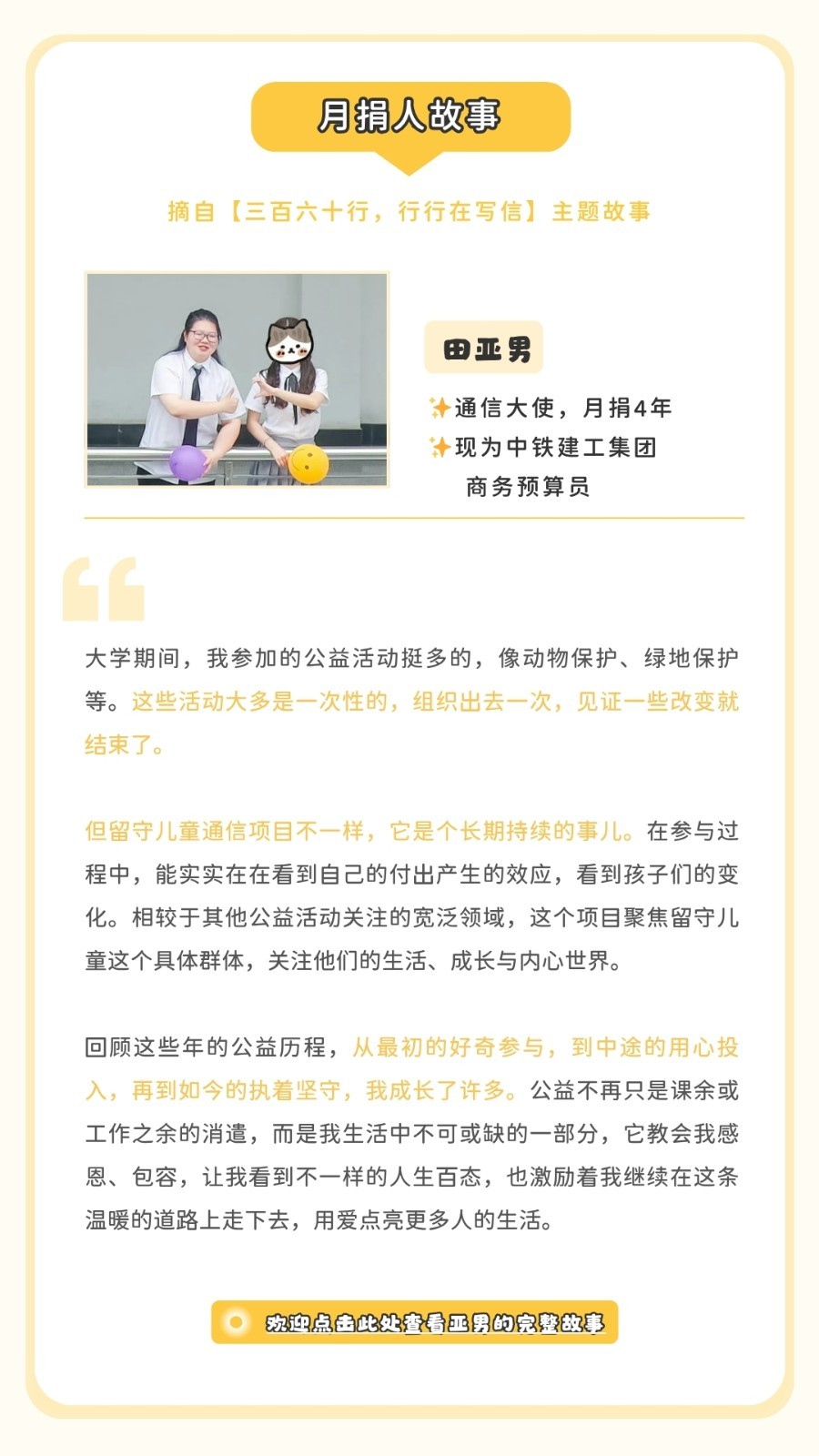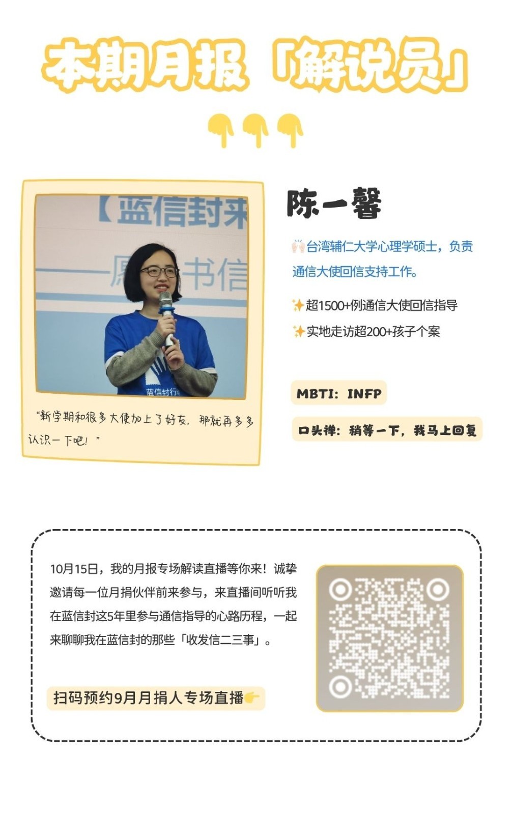 有任何不足或建议可通过回复邮件或联系蓝信封月捐人专属客服小信子,与我们交流反馈。