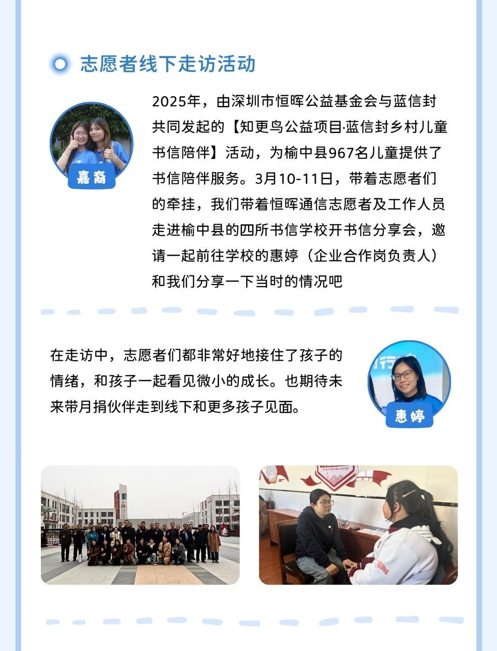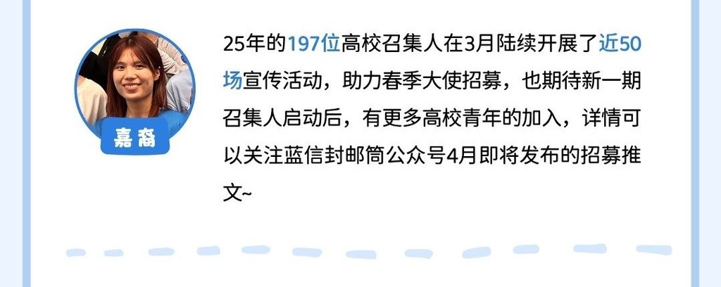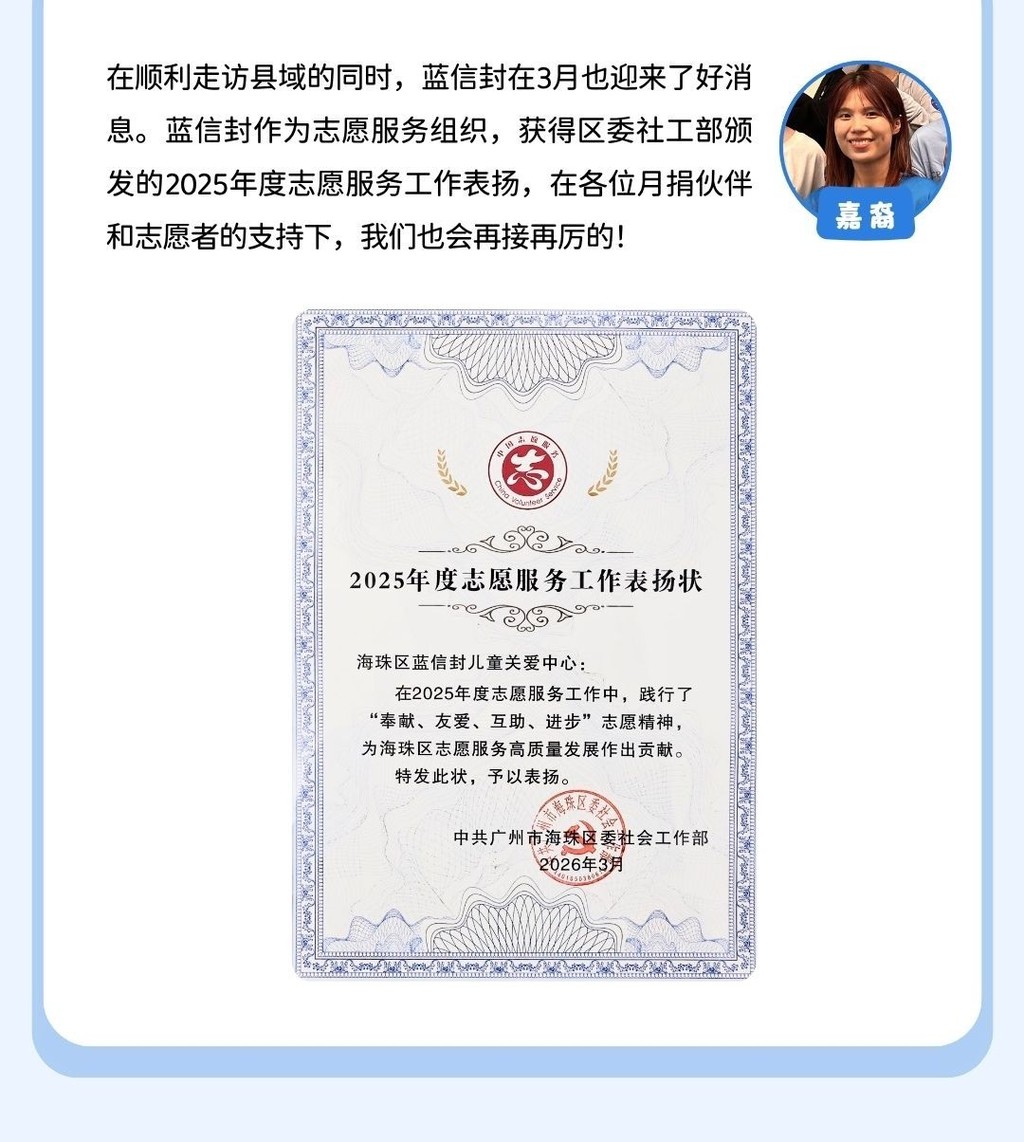 有任何不足或建议可通过回复邮件或联系蓝信封月捐人专属客服小信子,与我们交流反馈。