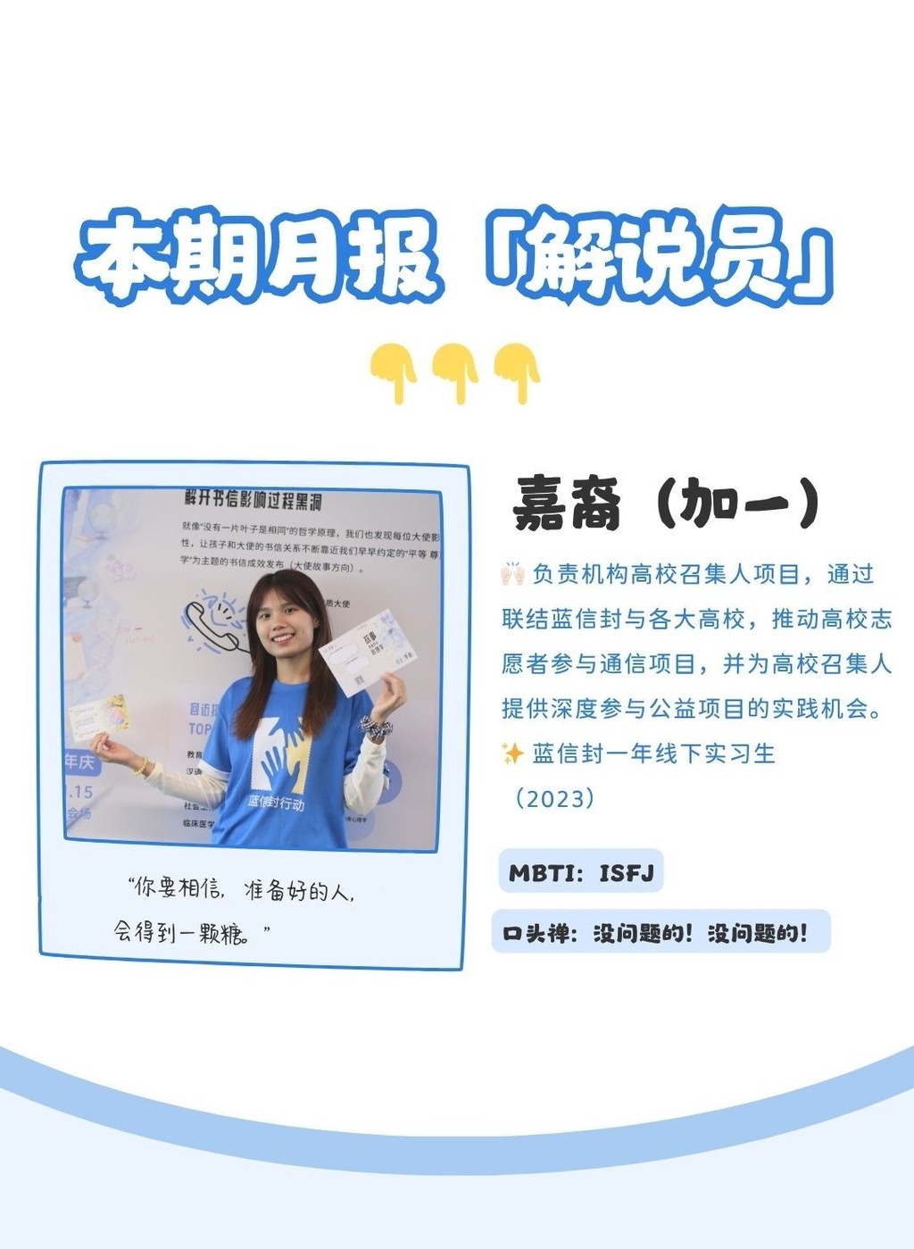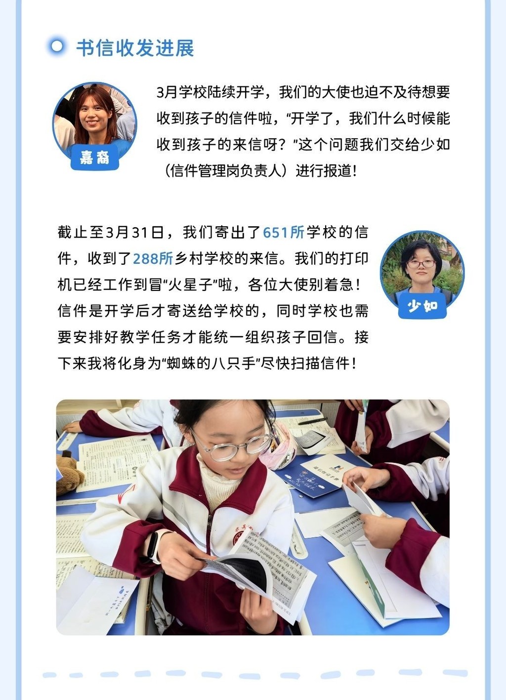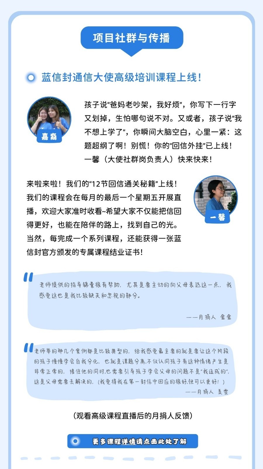 有任何不足或建议可通过回复邮件或联系蓝信封月捐人专属客服小信子,与我们交流反馈。