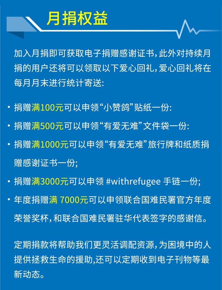 · 捐赠满3000元,可获得 #withrefugee 手链;