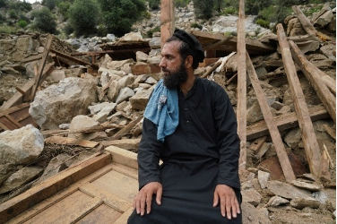 拉赫马图拉(Rahmatullah)在地震中失去了至亲的母亲和年幼的儿子,另外两个儿子受了伤,家中唯一的生计——几头牲畜,被压埋在废墟之下。如今的他,和无数受灾的阿富汗家庭一样,一边承受着亲人离去的剧痛,一边还要在没有食物、没有栖身之所、也没有片刻安宁的境况中艰难求生。