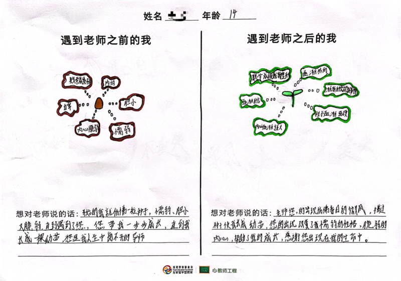 在广西桂林某乡村小学的心教师陈晓波老师,参与了心教师发起的《遇到心教师前后的我》活动,在班级里上了一节特别的主题课。