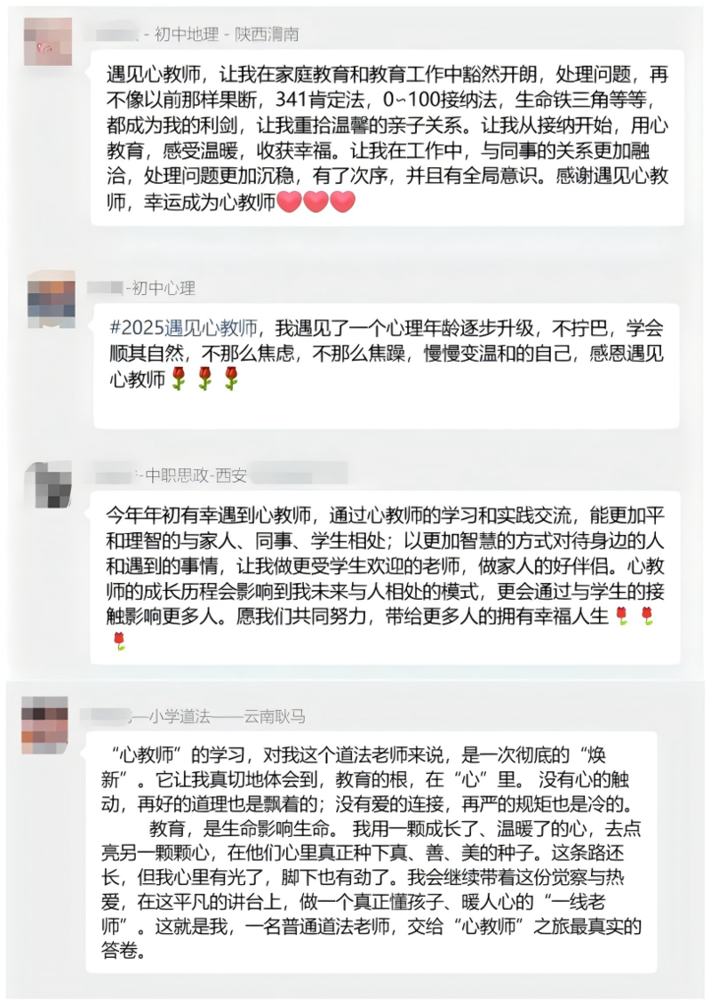 这些扎根课堂的暖心实践、家校同行的守护力量、藏在笔尖与画纸里的成长与感动,皆是心教师工程落地生根的鲜活成果,更是每一份善意汇聚而成的温暖回响。