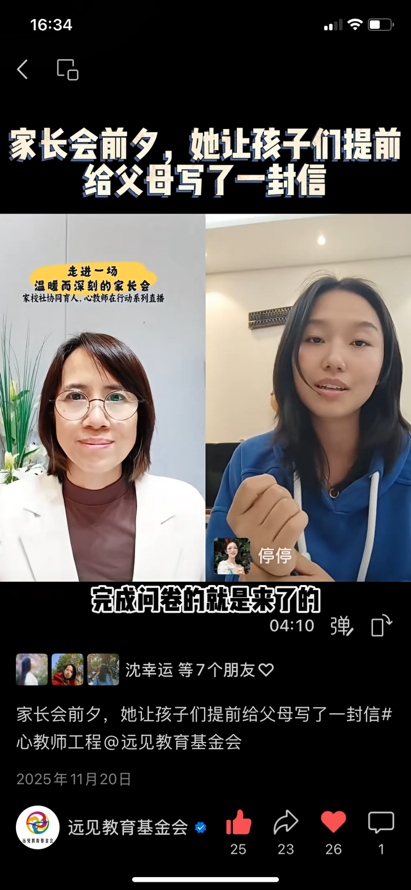 这些温暖的故事,我们不仅通过基金会公众号梳理传播,让更多人看见教育的力量,同时也会在每周的心教师直播中,邀请老师们分享经验,让这份教育的智慧流动起来,彼此滋养,也让更多教师和孩子因此受益。