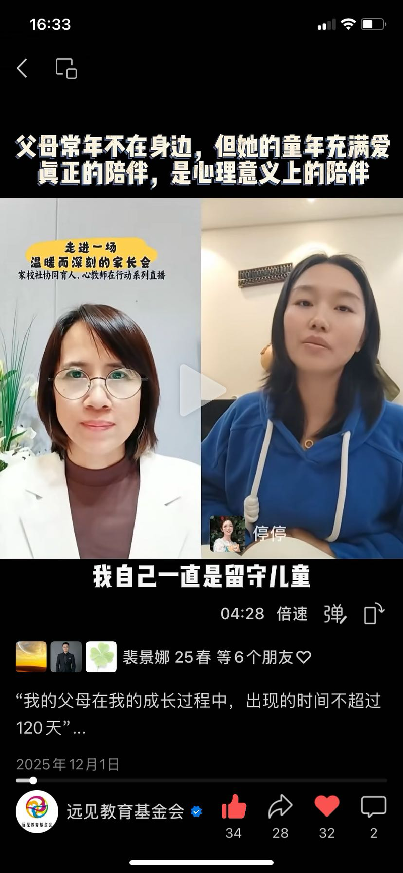 在直播中,她也用自己的成长故事,向所有不在孩子身边的家长传递心教师所倡导的育人理念——即使父母不在身边,爱也能通过点点滴滴的细节,稳稳地传递到孩子心里。