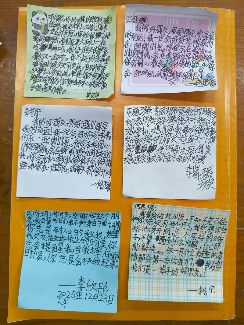 还有许多心教师,坚持为孩子写专属肯定贴,把对孩子的看见、认可与鼓励通过纸条传递,成为孩子们日常里被肯定、被珍视的温暖证明。