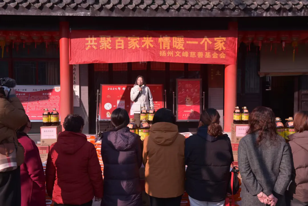 12月,扬州文峰慈善基金会联合6家社区和4家志愿者组织举办“共聚百家米,情暖一个家”活动发放仪式,为扬城200户困难家庭捐赠福慧米油。基金会副理事长兼秘书长肖楠出席活动并致辞。