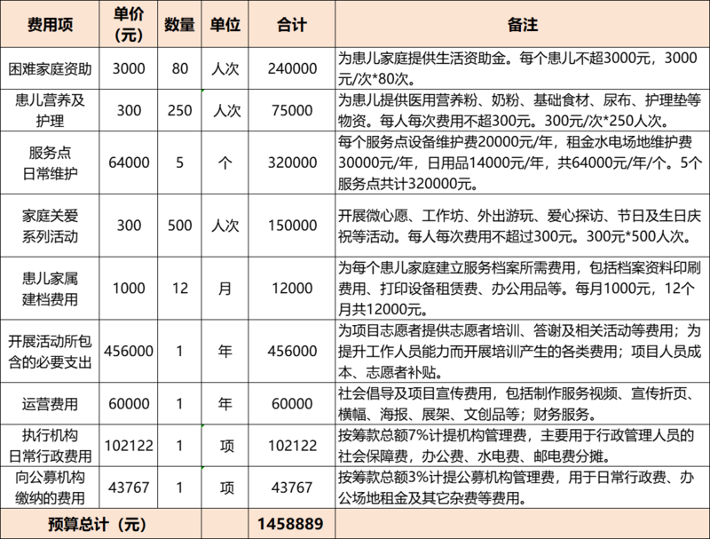 最低执行金额为3000元,善款将以资助6名患儿生活资助金的方式使用并反馈;如最终筹集善款低于“最低可执行额度”,善款将以转捐到同类项目的方式使用并反馈。