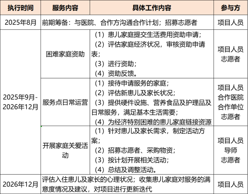 1、广州小家服务,为异地来穗患儿家庭提供居所、基础物资、心理关怀、家庭支援等服务,给异地就医的患儿家庭家的温暖,让患儿家庭住有所居。