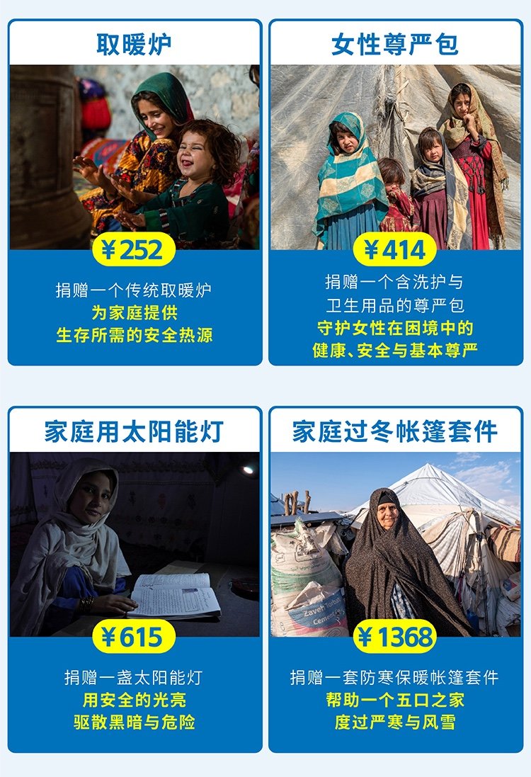 由联合国难民署发起的“阿富汗危机响应行动”项目已于2025年9月20日再次完成在慈善中国的备案,正式恢复线上公益项目的开展。这不仅代表着希望的接力得以延续,也体现了中国公益力量在国际人道主义行动中的持续壮大与担当。感谢您一路以来的等待和信任!您的支持,将再次汇聚成无数阿富汗家庭跨越困境、重拾希望的力量。在全球守望的共同努力下,希望得以穿越山海,传递至那些仍在困境中的家庭。