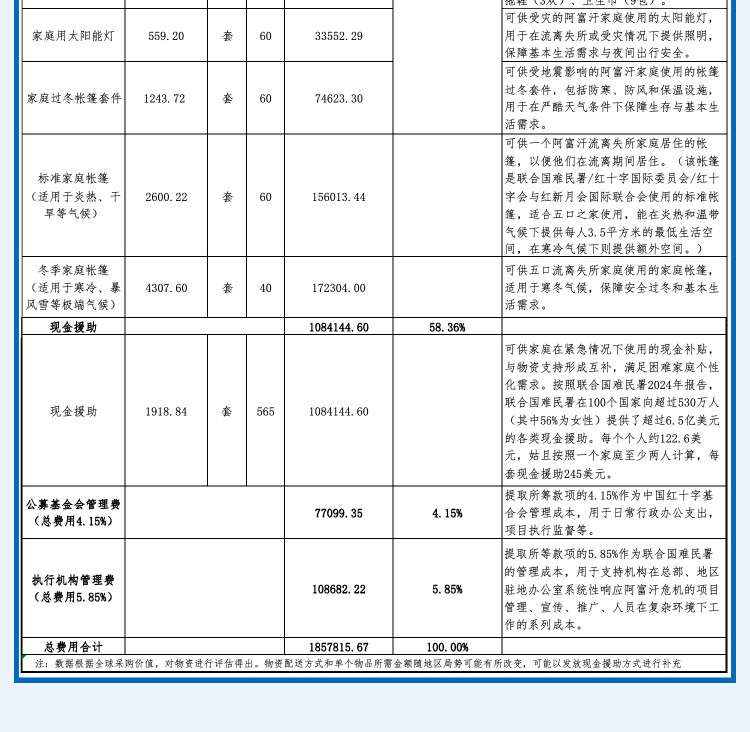 在中国,中国红十字基金会携手联合国难民署上线本项目以来,截至2025年10月16日,已通过易宝公益捐赠人民币496,546.81元,相当于累计为身处阿富汗危机中的322个家庭送上了核心救济物资包。每份爱意都将支持更多阿富汗人在困境中勇敢自救,塑造更美好的未来。是您的善意与慷慨,一次次为在困境中挣扎的阿富汗家庭点亮了前行的光。