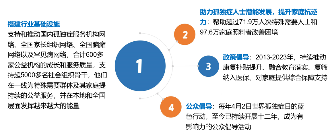 这是最初。2010年电影上映,2011年壹基金海洋天堂公益计划启动,开始更系统地围绕这个议题开展工作。到2023年底,壹基金海洋天堂计划做了这些努力——